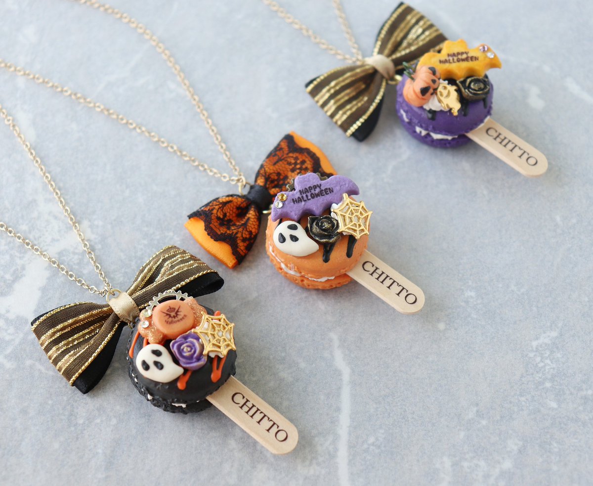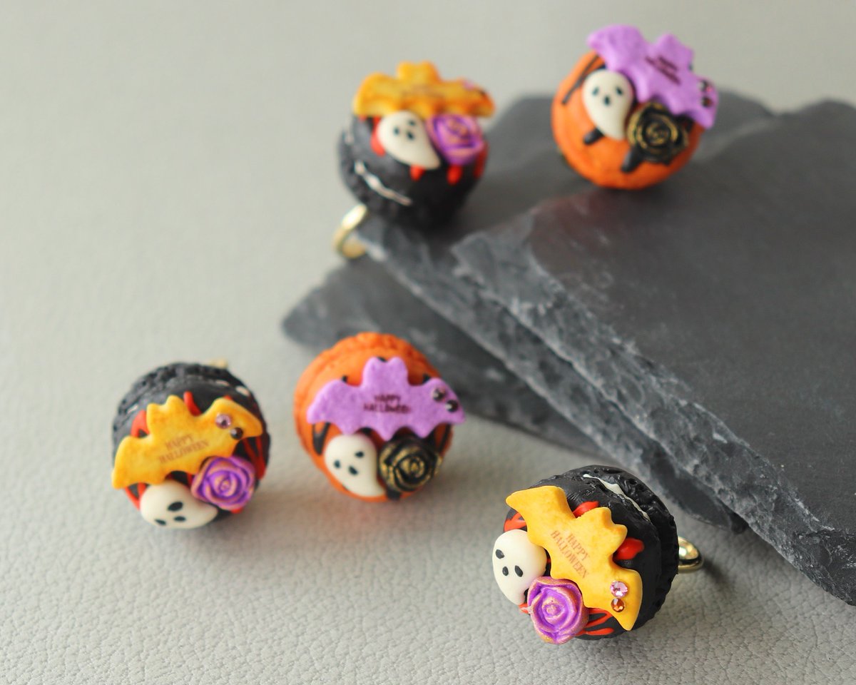 【お品書き その③】 マカロンリング マカロンおばけさんリング アニマルマカロンキーホルダー 今回はクモの巣いっぱい描きました🕸️