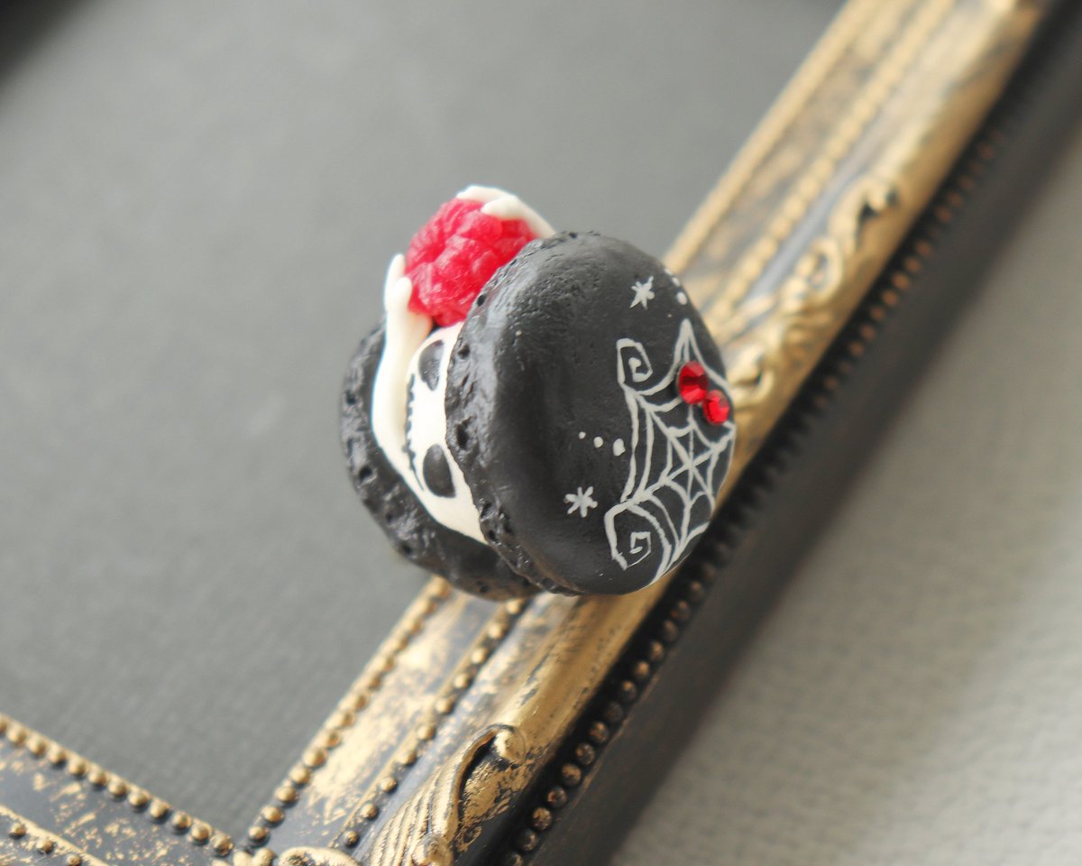 1 11 【お品書き その③】 マカロンリング マカロンおばけさんリング アニマルマカロンキーホルダー 今回はクモの巣いっぱい描きました🕸️ 22/09/21 23:53