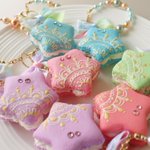 0 14 【お品書き その⑥】 お星さまマカロン にこにこ雲 お星さまマカロンはバッグチャームとリングをお揃いで作りました。バッグチャームは裏側もレースを描きました♡ 今回は無性にレース描きたいモードでした。 にこにこ雲さんは、ほんわか楽しく制作しました( *´ー`) 22/10/26 23:58