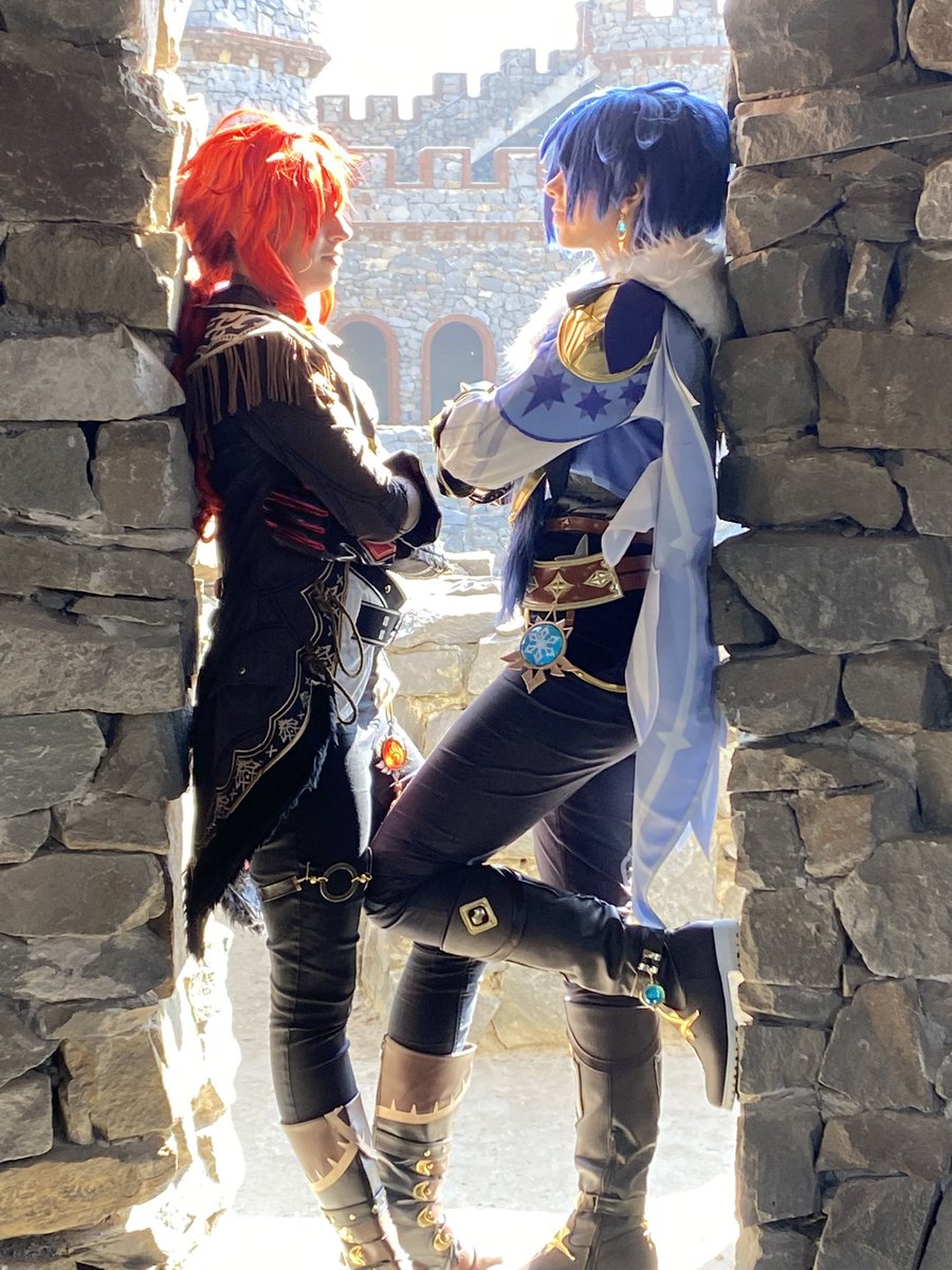 «Надежда восстает, как феникс, из пепла разбитых мечтаний». Kaeya - @hiroi_nakano Diluc - @Jiggly_cos Ph - @EpitafiyaDell Wig Kaeya - @CosplayNihon Help - @Rune_of_lovers Sandu #GenshinImpact #Kaeya #Diluc #kaeluc #cosplay #gamecosplay