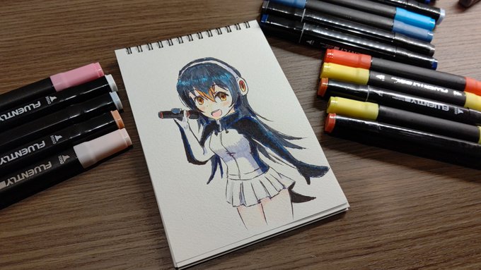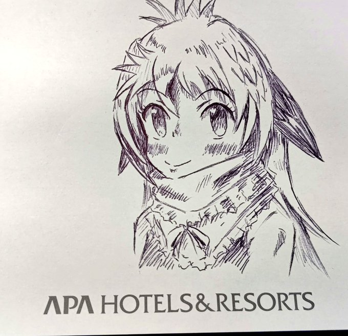 #今月描いた絵を晒そう 100均イラストマーカーとホテルにあったボールペンで描いた1枚しかありませんでしたわ🐧