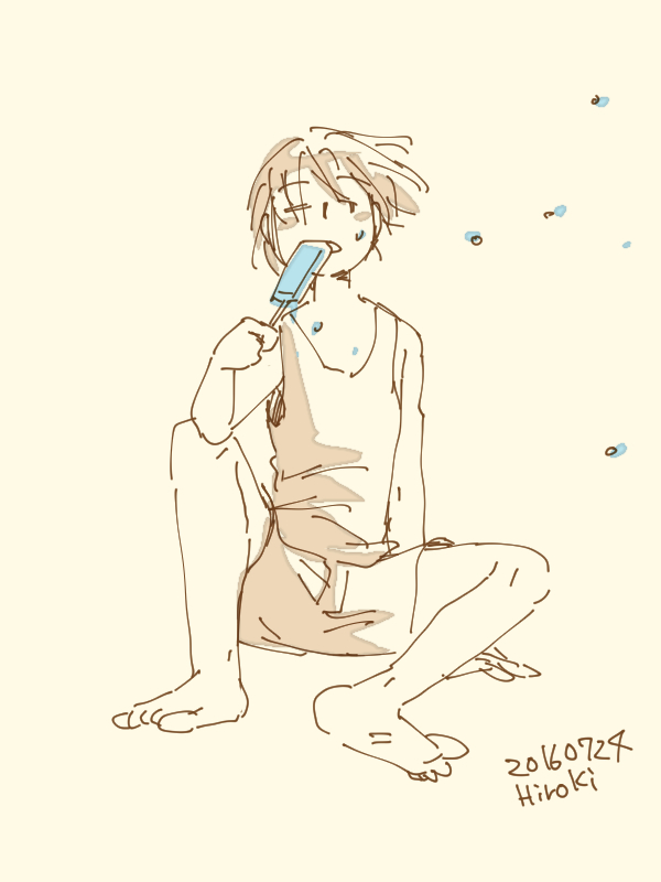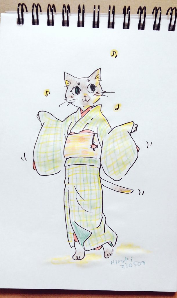 午前中の吉川教室で、子供たちの前で描きました。 うっかり、一部ペンの選択をミスって、絵の具が滲んじゃったよー みんなは真似してはいけないよ! このハガキは、友達に残暑見舞いとして、これから出します。 twitter.com/hiroki1970/sta…