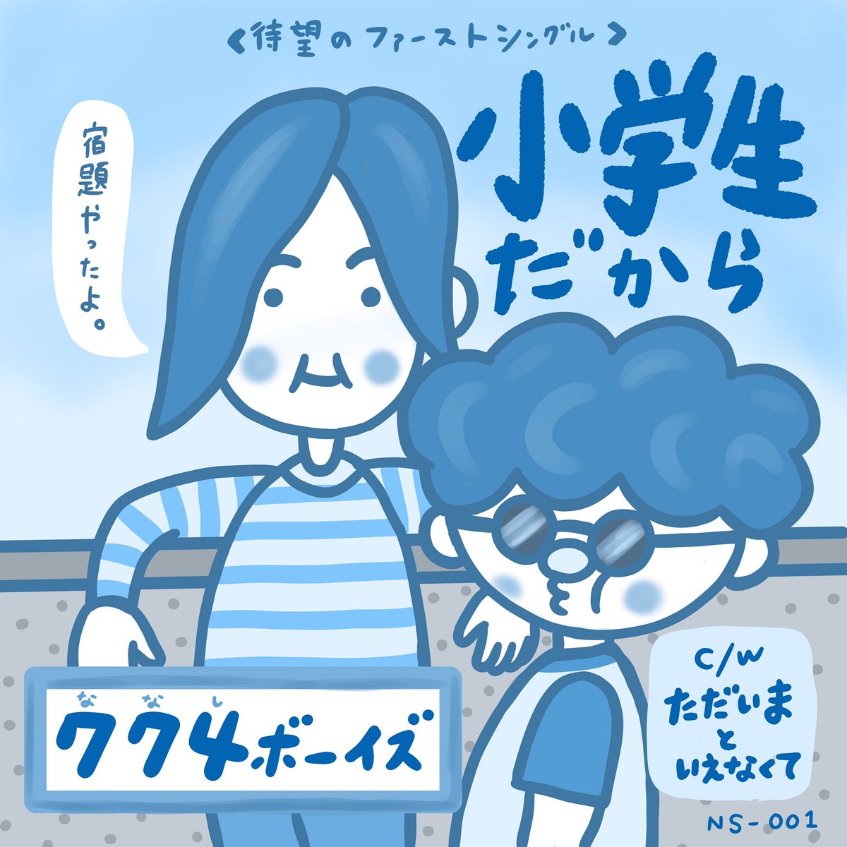 2 17 音楽デュオ、774ボーイズ(ななしボーイズ)の記念すべきファーストシングルのジャケットです。 撮影場所は、近所の公園です。 #イラスト #ファンタジー #こども #福祉 #多様性 #ユーモア #音楽 #一コマ漫画 #レコードジャケット #名前のない小学生 #音楽デュオ #芸術同盟 #絵描きさんと繋がりたい 20/01/22 07:27