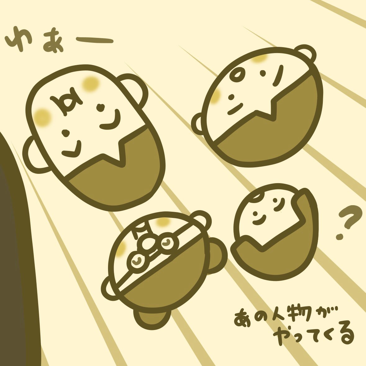 「あの人物がやってくる!?」 次回、のんきにご期待くださいませ😚 #イラスト #illustration #アート #日常 #ファンタジー #こども #kids #福祉 #多様性 #絵本 #ユーモア #音楽 #一コマ漫画 #comic #謎のシルエット #次回明らかに #comingsoon #名前のない小学生 #芸術同盟 #絵描きさんと繋がりたい