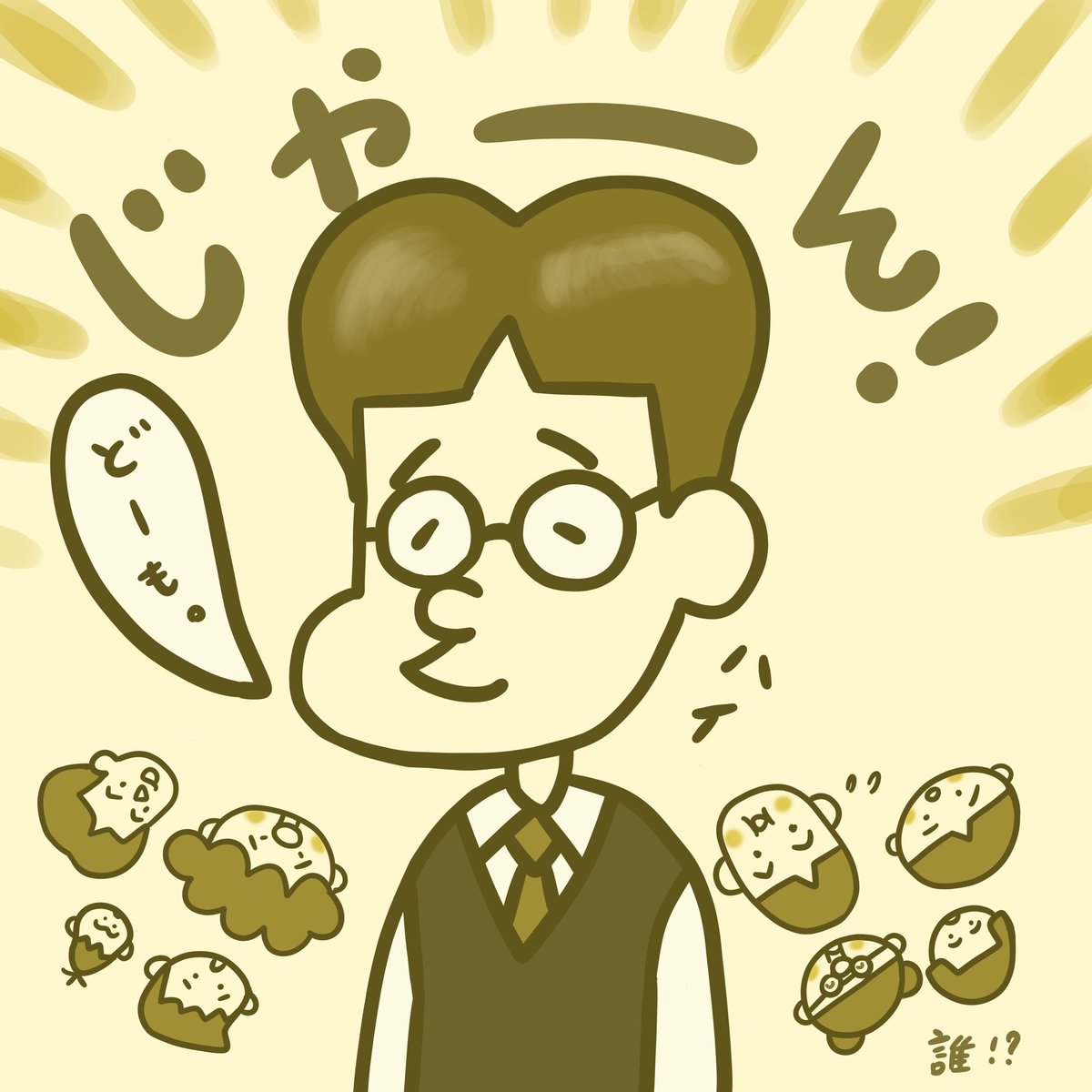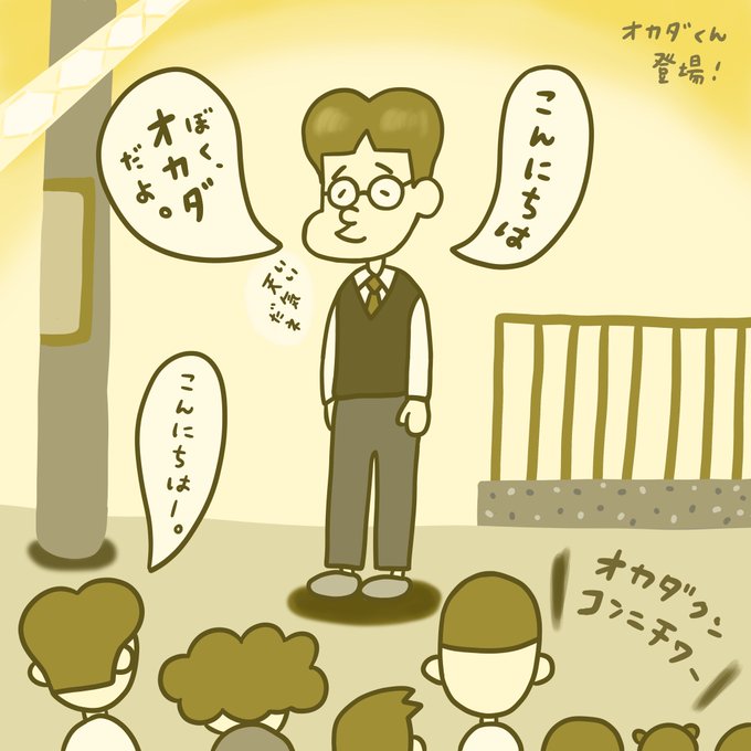 「オカダくん登場!」 新キャラクターです、以後よろしくお願いします。 #illustration #art #comic #日常 #ファンタジー #こども #福祉 #多様性 #絵本 #ユーモア #音楽 #一コマ漫画 #同級生 #高校生 #新キャラクター #ほっこり #名前のない小学生 #芸術同盟 #絵描きさんと繋がりたい