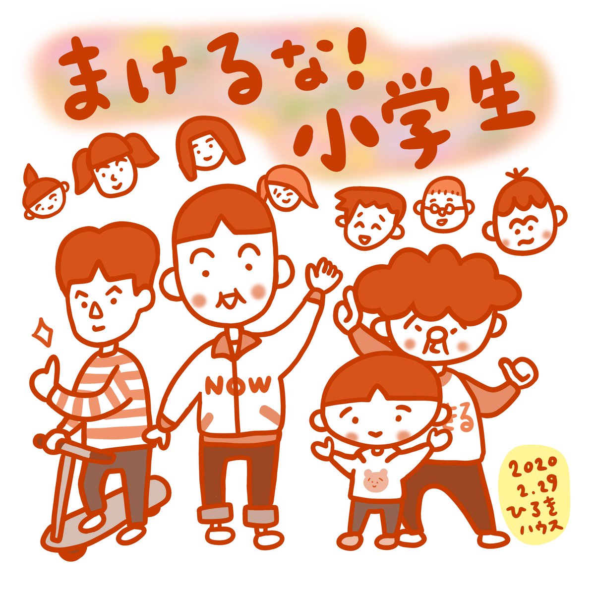 2 9 「まけるな!小学生(だいだい色)」 #illustration #art #日常 #こども #子供 #福祉 #多様性 #絵本 #ユーモア #漫画 #ほのぼの #学校 #休校 #名前のない小学生 #芸術同盟 #絵描きさんと繋がりたい 20/02/29 21:40