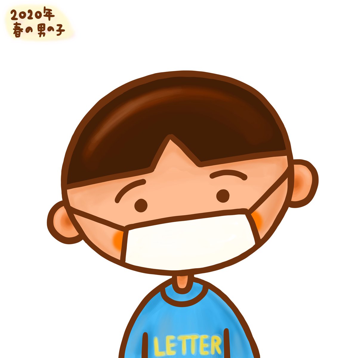 「2020年春の男の子」 家の中でも子供は元気です。終息の日を待って。 #illustration #日常 #こども #子供 #福祉 #多様性 #絵本 #漫画 #小学生 #休校 #新型コロナ #コロナウイルス #対策 #マスク #春 #名前のない小学生 #絵描きさんと繋がりたい