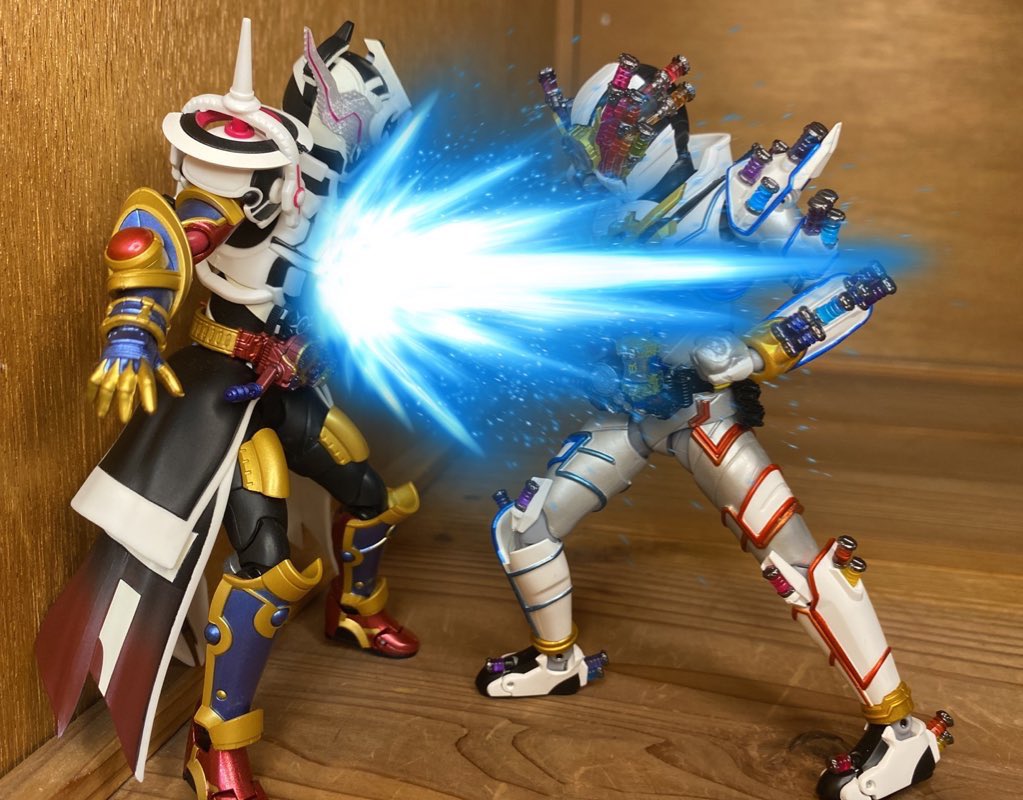 #夜のフィギュア撮影会 10/10 お題 『祝』 ウォズ 「?…我が魔王…!」 ソウゴ「ウォズ…祝え…」 ウォズ 「は?」 ソウゴ「…祝えと言っている」 ウォズ 「祝え! 時空を超え、過去と未来をしろしめす時の王者 その名もオーマジオウ! 歴史の最終章へと辿り着いた瞬間である!」
