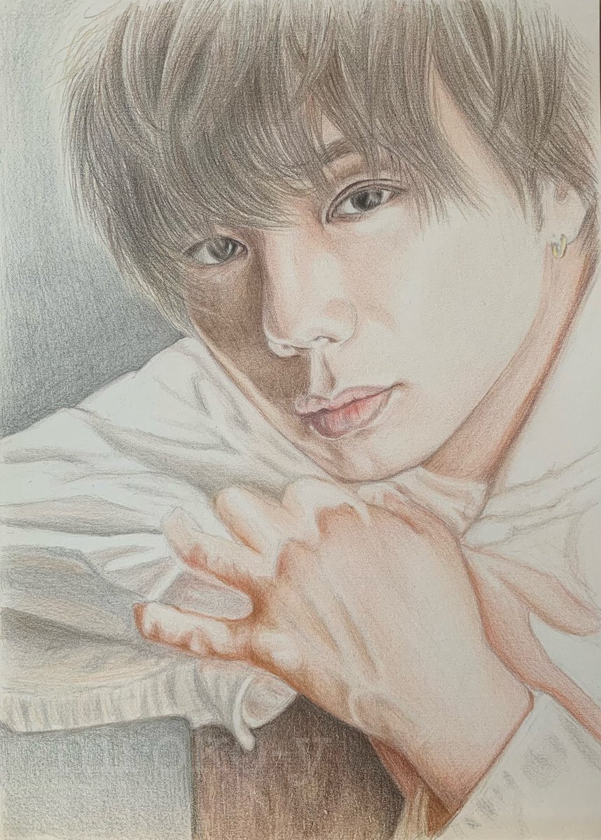 人物画シリーズ② だいぶ前の写真を模写 描きたい写真を探してると、顔の輪郭やパーツ、印象が写真ごとに違うので、"らしさ"を平均するのが難しかった💦 いまの印象とはだいぶ違うかも🙏 ※2020年作成 ※描いた順番と載せてる順番は違います #色鉛筆 #coloredpencildrawing #coloredpencil #drawing