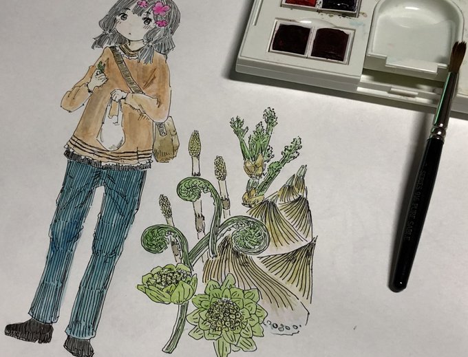 0 11 今年もたけのこを食べている #ペン画 #水彩画 #イラスト 21/04/09 20:15