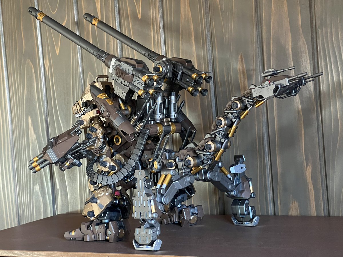 ロングレンジバスターキャノンを戻してら完成です! HMMゴジュラス・ジ・オーガ!! 令和4年11月23日から始めて2ヶ月と1週間掛かりました… 感無量( ̄▽ ̄) スミ入れはまだ9割やってませんが、その辺はしばらく眺めてからちょこちょこやっていきます。 一旦完成! #今月作ったプラモ晒そうぜ