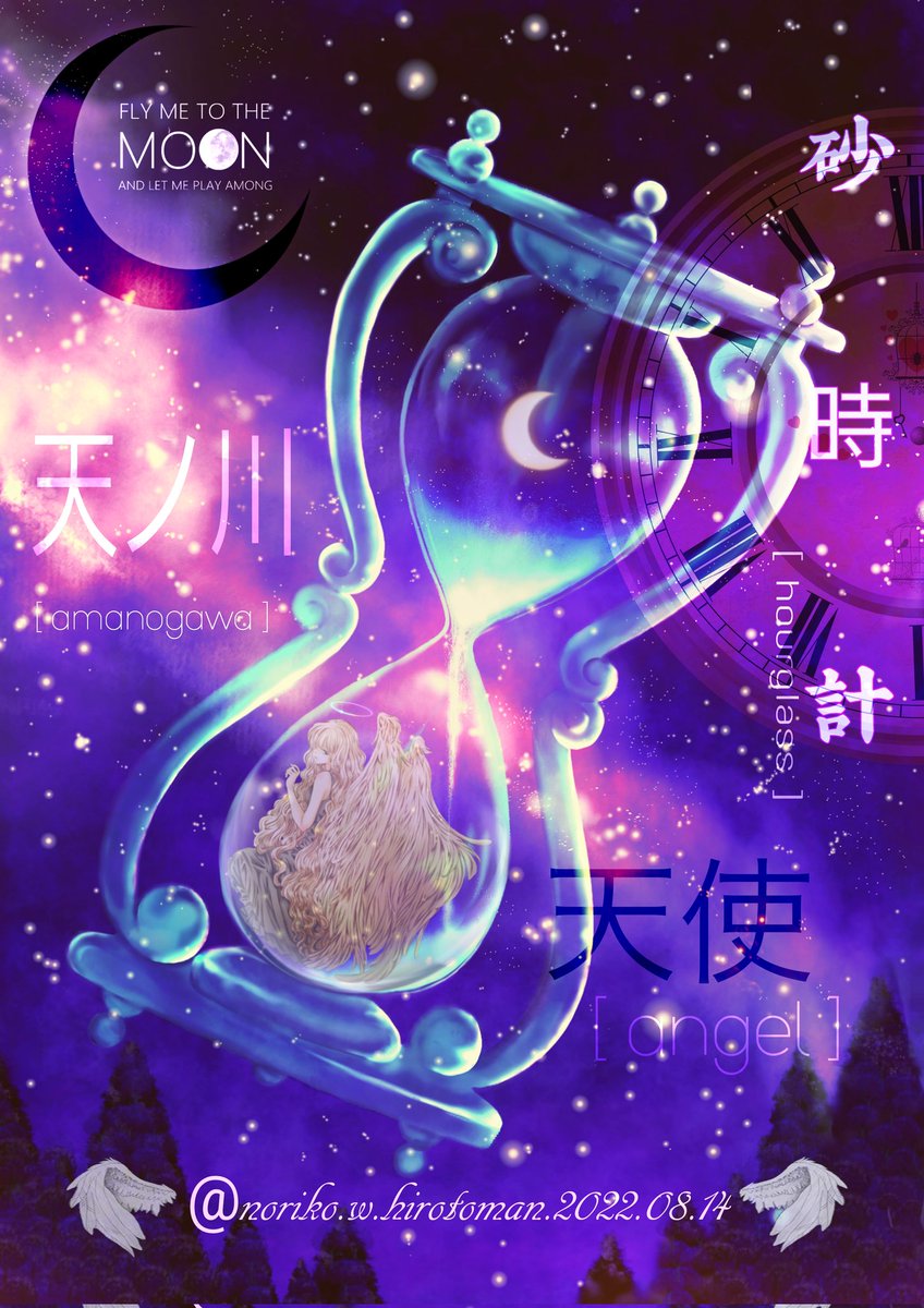 以前描いた砂時計が気に入ったのでそこからちょっと物語があったら面白いなと思って描いて見ました✨ 砂時計、月、星、天の川、そして砂時計に入った天使 #イラスト #絵描き #絵描きさんと繋がりたい #創作イラスト #オリキャラ #夜空 #天使 #みんなで楽しむTwitter展覧会