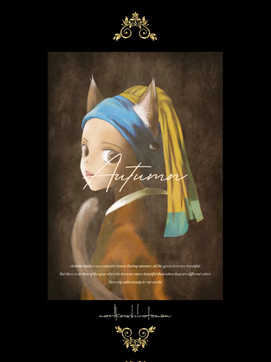 フェルメールの耳飾りの少女から獣耳飾りの少女って感じでฅ^. ̫ .^ฅ✨ #イラスト #illustration #イラスト好きな人と繋がりたい #絵描き #絵描きさんと繋がりたい #夏の創作クラスタフォロー祭り #みんなで楽しむTwitter展覧会