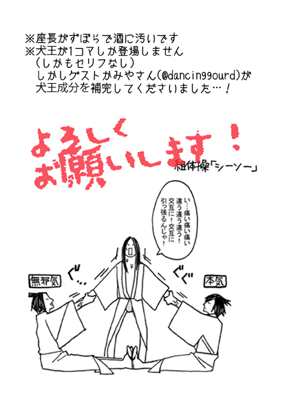 13 37 『犬応!』新刊サンプルです。 ※座でギャグ※CPなし※背景ログアウト※現パロを少し含みます 企画ペーパーもあります! そしてツリーに続きます👉 #犬応_参加表明 23/01/25 19:10