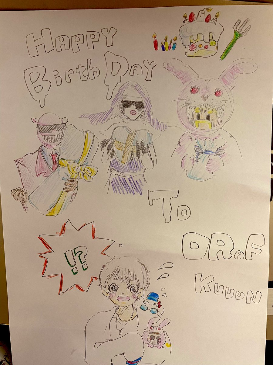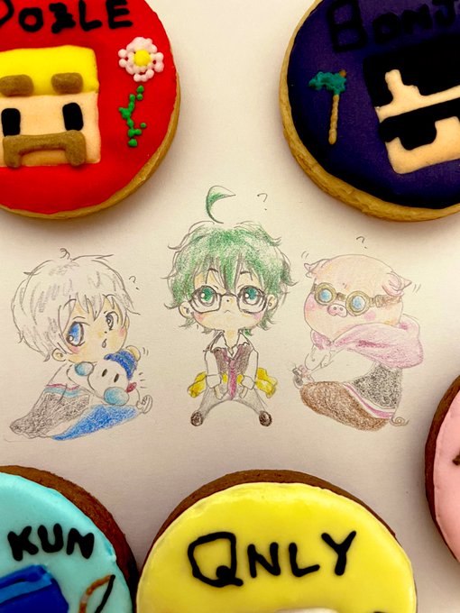 仲良し兄妹はお菓子たくさん、食べて、平和に過ごしてくれ……😌🍪🍰🍭🍩🍮🧁☕️色塗る力は吹き飛びました😇💫(おらこちゃん何気に初描きかもわからん…難しいわ😌) #ドズル社キャラバン #見るかもわからん ⛄️⛄️🎀