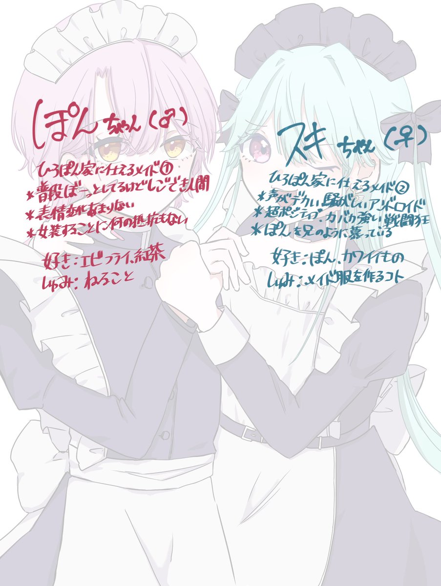 1 5 創作っ子第2弾🌷 メイド達に代理頼んでます! 天然人間とつよつよアンドロイドコンビです #イラスト #ひろぽんさん家の子 23/02/25 16:09