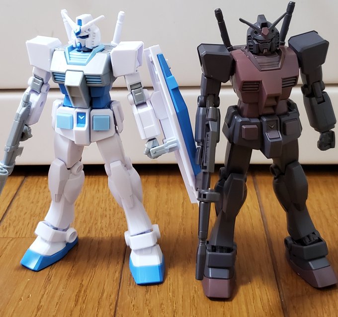 長い間組まずに放置してたEGガンダムとイベント配布のリサイクルガンダムを作成 同じように見えてリサイクルのはかなり簡素な作りでパーツも少ないです どちらかというとEGの方が親切で組みやすかったです 2枚目はお気に入りのロボット魂(白関節)のとの比較 #ガンプラの画像を貼るとRTされると聞いて