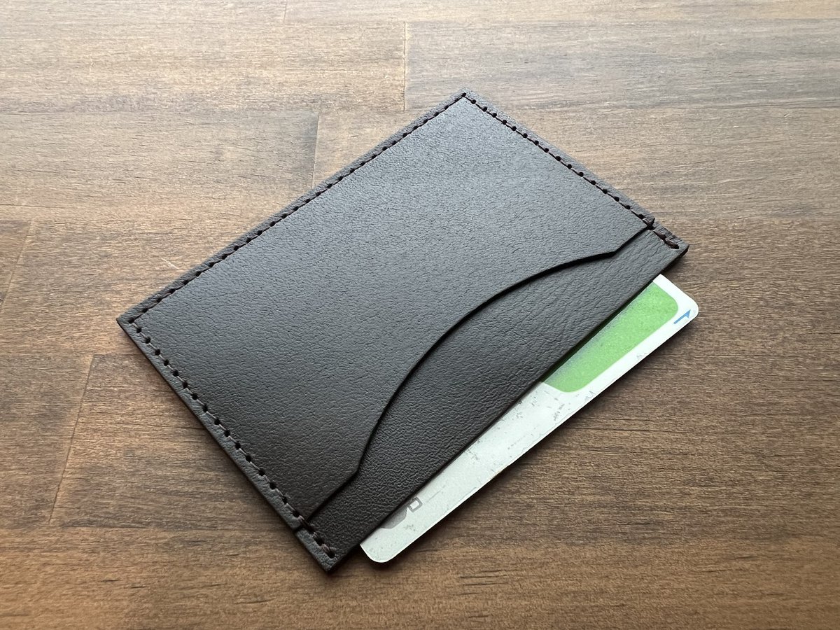 本革パスケースのサンプルきたよ! 綺麗に素押し出てる……! カードは余裕で、名刺もギリ入るサイズ。