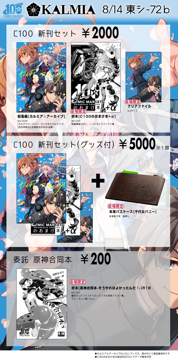 コミケ100のお品書き。 折本は会場限定ですが、後日BOOTHにてデータ販売しますので会場に来られない方はそちらからどぞ。 総集編はショップにて委託販売中です。