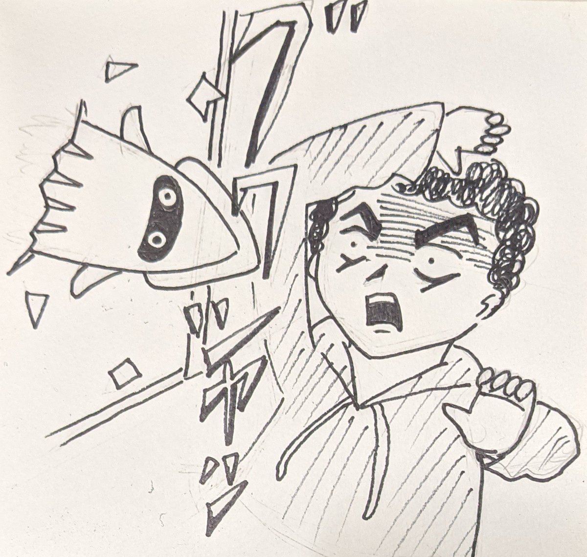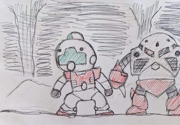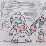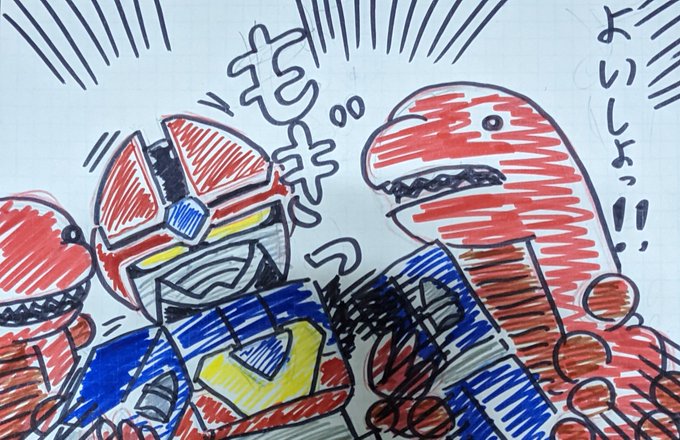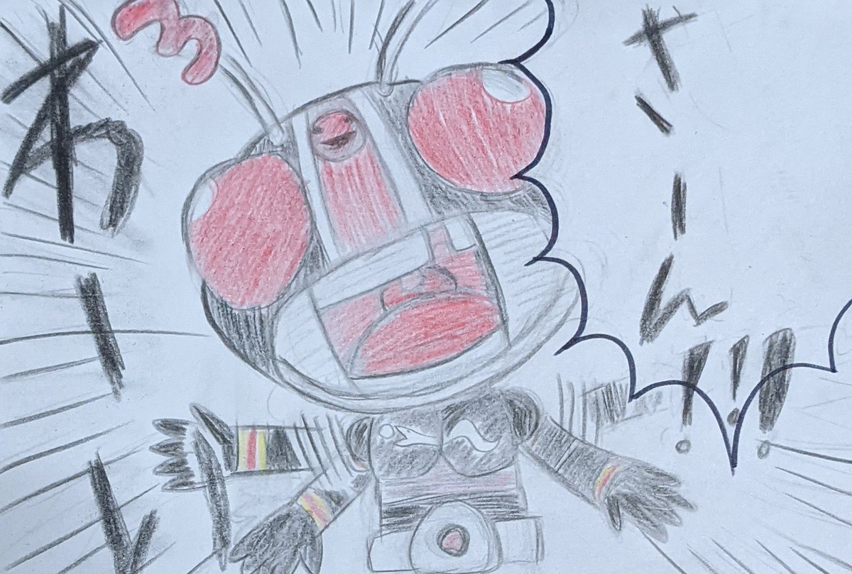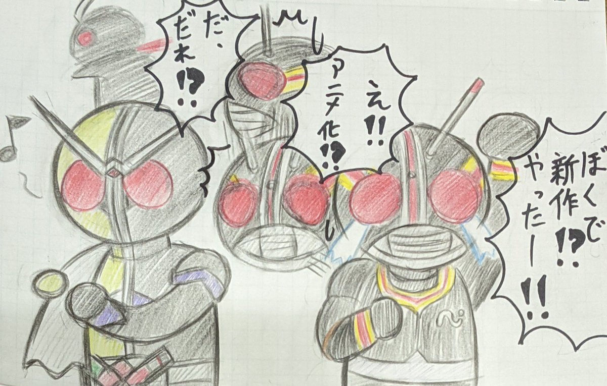 ①仮面ライダーblackSun ②バイクロッサーケン 石ノ森ヒーローの「兄弟」拳として兄弟同然で仮面ライダーなだけでリメイクされた事にガツンと言ってやろう思ってたらいきなり左の肩の何かもぎって剣にするモンだから・・ #特撮版深夜の真剣お絵描き60分一本勝負R