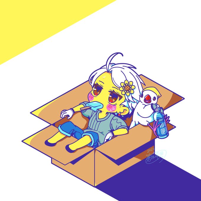 1 7 【創作絵】夏と引越とミシェル 「水分補給は忘れずに」 #創作絵 #イラスト #オリジナル #文鳥 #デフォルメ #夏 #引っ越し 22/09/17 10:34