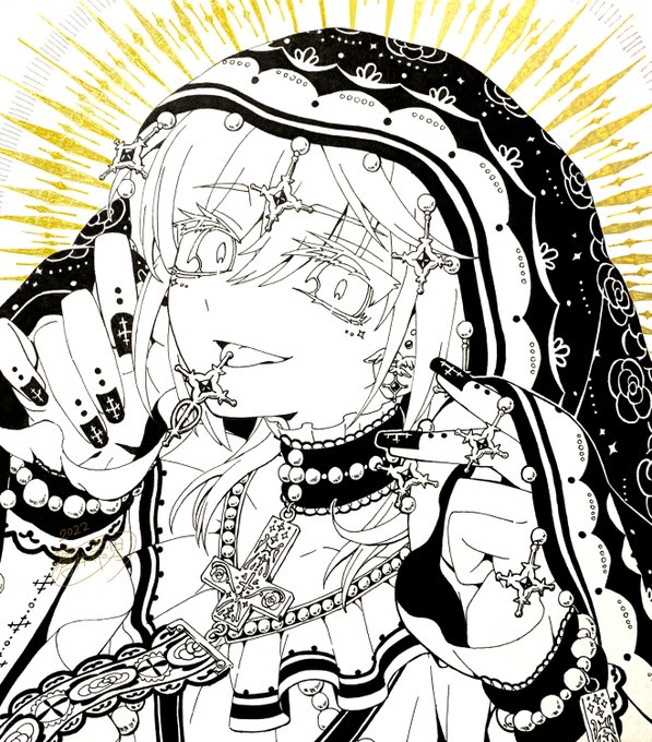 0 7 【創作絵】光よ神を騙れ【アナログ】 (過去上げた色紙絵を微調整しました) #創作 #イラスト #アナログ #オリジナル #ゴシック 22/09/24 15:25