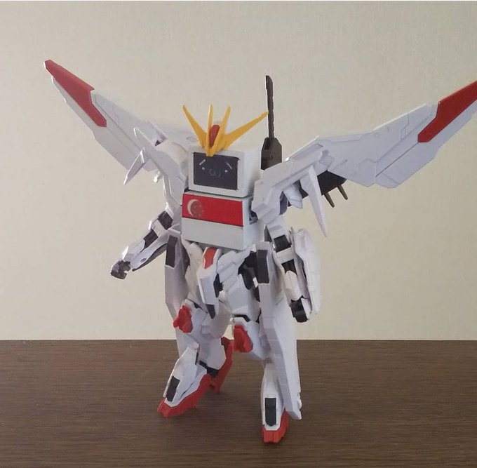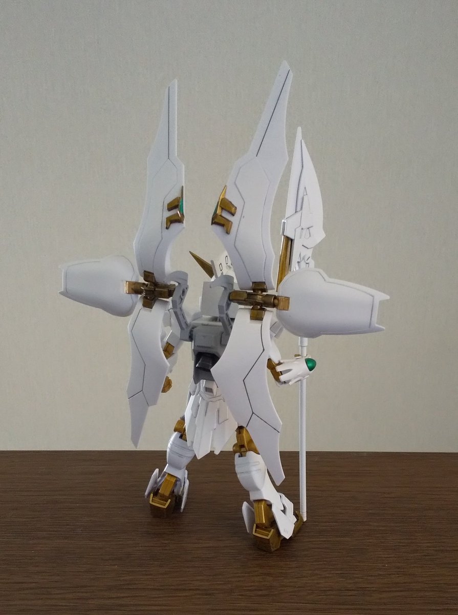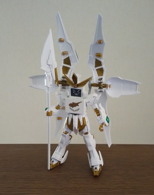 オリジナルガンプラのキプロスversionです。天使の様な姿が特徴の機体。背部の翼を折り畳めば防御型の姿にかわる。(という設定)(´・ω・`) #ガンプラの画像貼るとRTされると聞いて #ガンプラ好きとつながりたい
