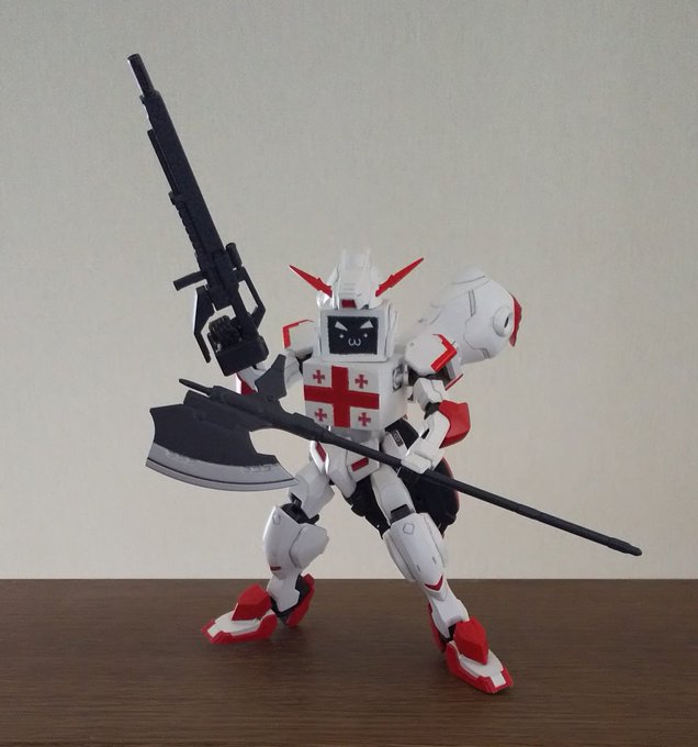 オリジナルガンプラのジョージアversionです。ジョージアが対ロシア用に選定した機体。近接戦から遠距離戦まで対応できる汎用機で、状況によっては、背部から腕を展開できる。(という設定)(´・ω・`) #ガンプラの画像貼るとRTされると聞いて #ガンプラはどんな自由な発想で作ってもいいんだ