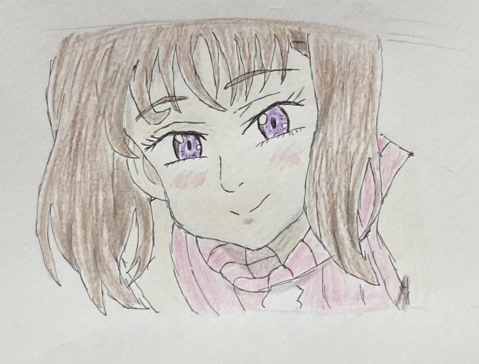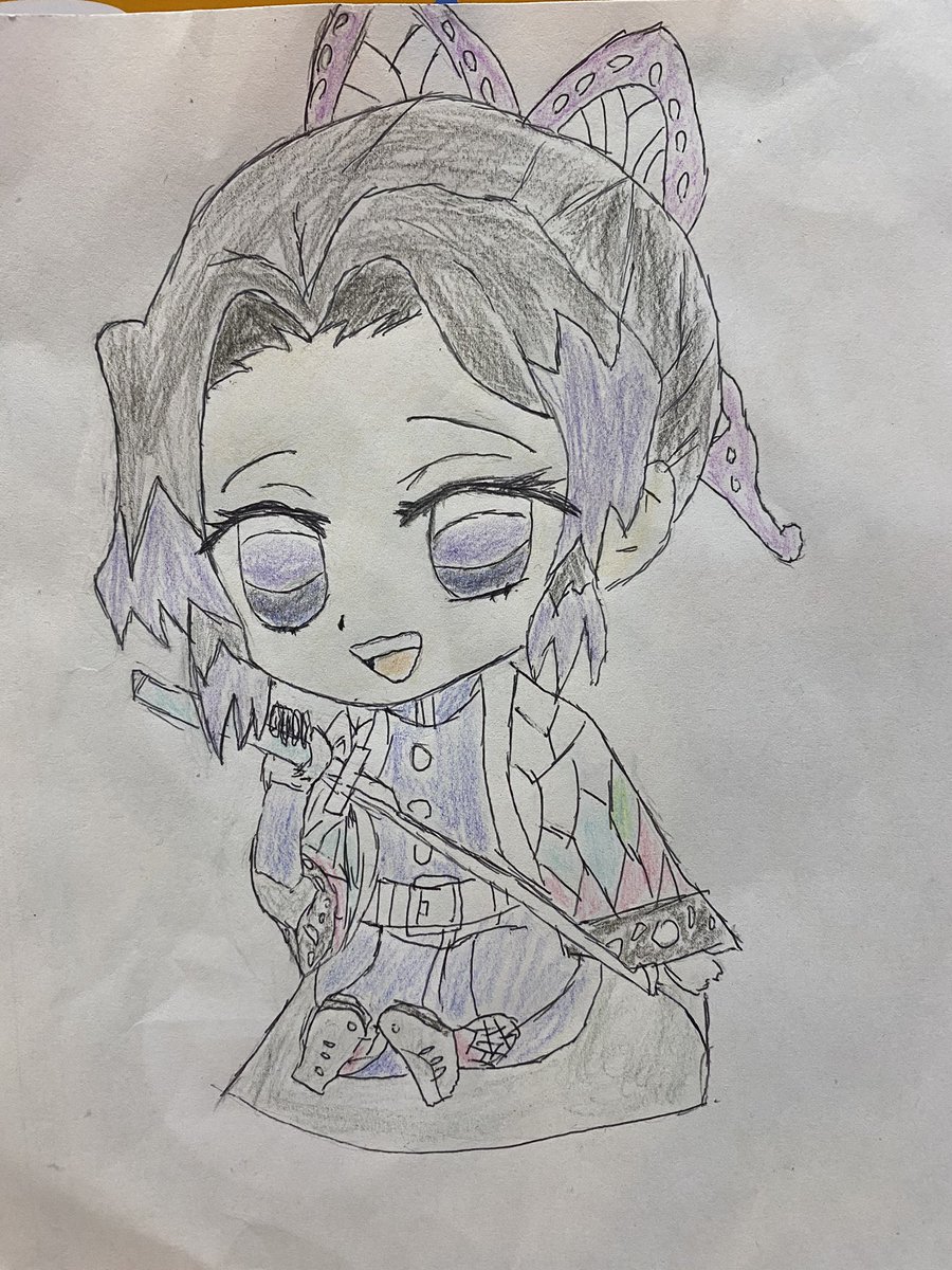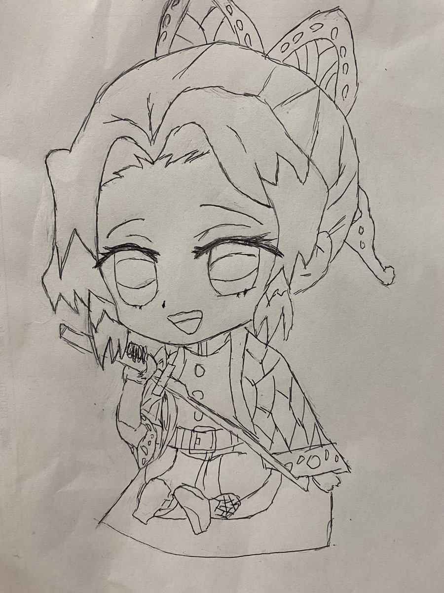 【#模写イラスト 】 答えはこちら❗鬼滅の刃の胡蝶しのぶのチビキャラバージョンです🎶 色なし、色鉛筆、アプリで色塗りした3枚目をアップします✨ 1枚目→色なし 2枚目→色鉛筆 3枚目→アプリ色塗り #絵描きさんと繋がりたい #イラスト好きな人と繋がりたい #アイビスペイント #色鉛筆イラスト