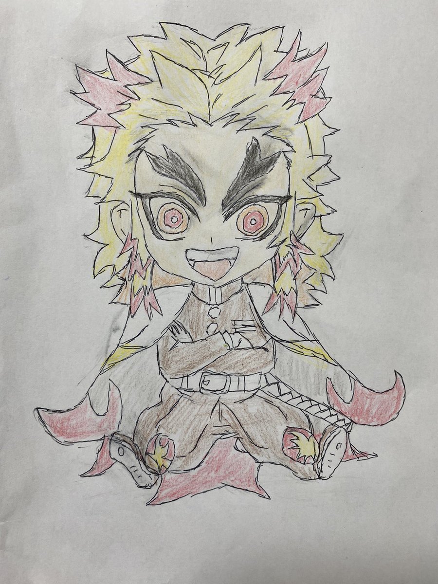 【#模写イラスト 】 今回投稿するのは鬼滅の刃の煉獄杏寿郎のチビキャラバージョンです🎶 色なし、色鉛筆、アプリで色塗りした3枚目をアップします✨ 1枚目→色なし 2枚目→色鉛筆 3枚目→アプリ色塗り #絵描きさんと繋がりたい #イラスト好きな人と繋がりたい #アイビスペイント #色鉛筆イラスト