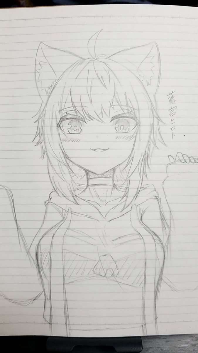 眠れなかったのでお絵描き アナログ猫又おかゆ #絵かゆ