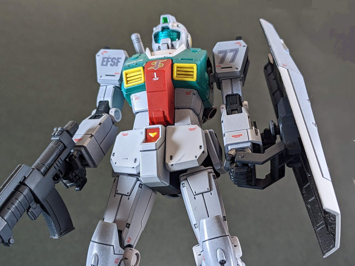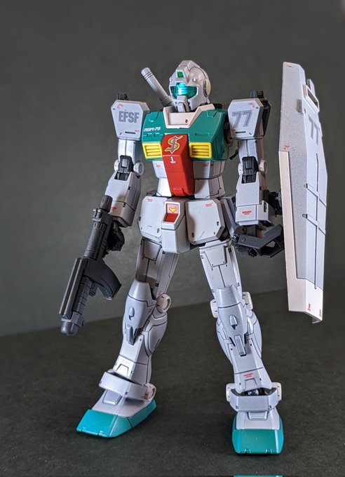 HGUCジム(スレッガー搭乗機) 久しぶりに作業やり切った〜 成形色より少し暗いイメージだったので塗装、デカール〜トップコートまで キットのカッコよさ少しは引き出せたかな ガンプラ作りは楽しいを再認識 #ガンプラ #ガンプラ好きな人と繋がりたい #ガンプラの画像を貼るとRTされると聞いて