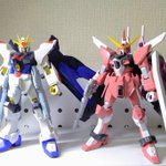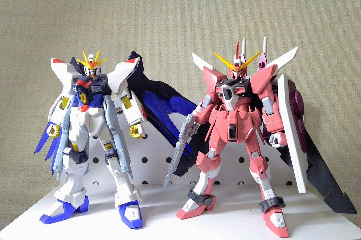 旧HG1/144 ストライクフリーダムガンダム インフィニットジャスティスガンダム 顔以外は素組みで😄 #ガンプラ好きと繋がりたい #ガンプラの画像貼るとRTされると聞いて