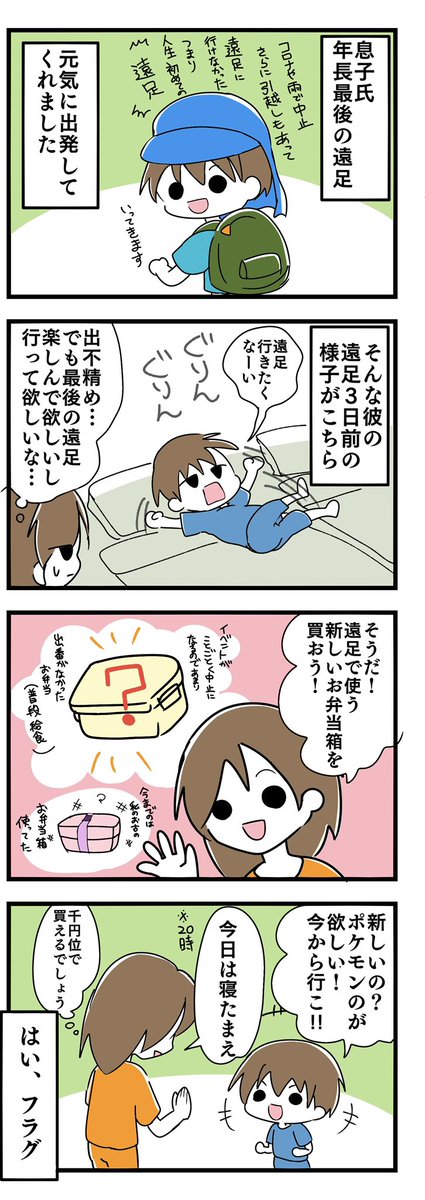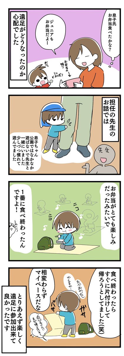 0 11 幼稚園最後の遠足④[完]+おまけ 彼の中でお弁当が1番のイベントで食べたら終わりなのね(笑) そんなにお弁当楽しみにしてくれて母ちゃん嬉しいよ! 遠足楽しんだみたいで良かった!! #育児絵日記 #育児漫画 #コミックエッセイ #遠足 22/10/26 06:11