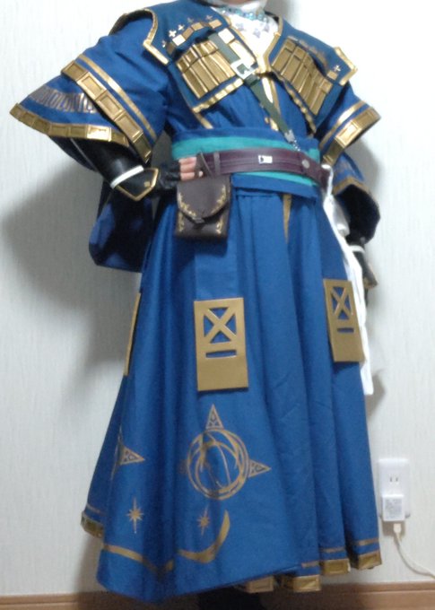 #今年一番気合い入れて作ったコスプレ衣装見せて スタオのアベラルド 3年ぶりに衣装作った...パーツごとに何回か作り直しと修正かけてバランス重視で仕上げました。ローブ下は半円2枚を袴よろしく畳んでるので広げて撮影するの楽しみです。