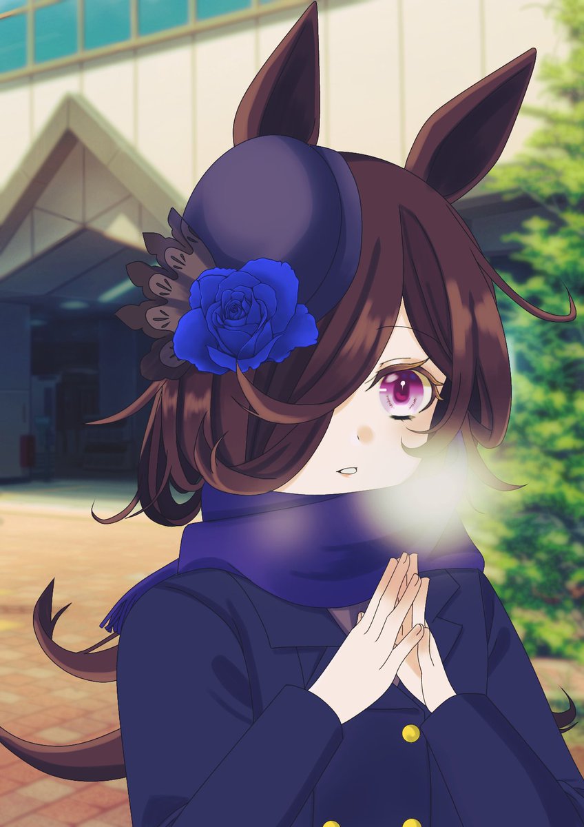 おはライス🍚 お題ありがとうございました! 背景はお借りしました🙏 > ひさめさんの好きな服をライスに着せてやって欲しいです!!! odaibako.net/detail/request… #ウマ娘 #ライスシャワー
