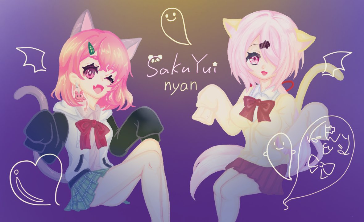 7 47 #しいなーと #笹の絵 #さくゆい ハロウィン風さくゆいにゃん🎃 20/10/21 22:31