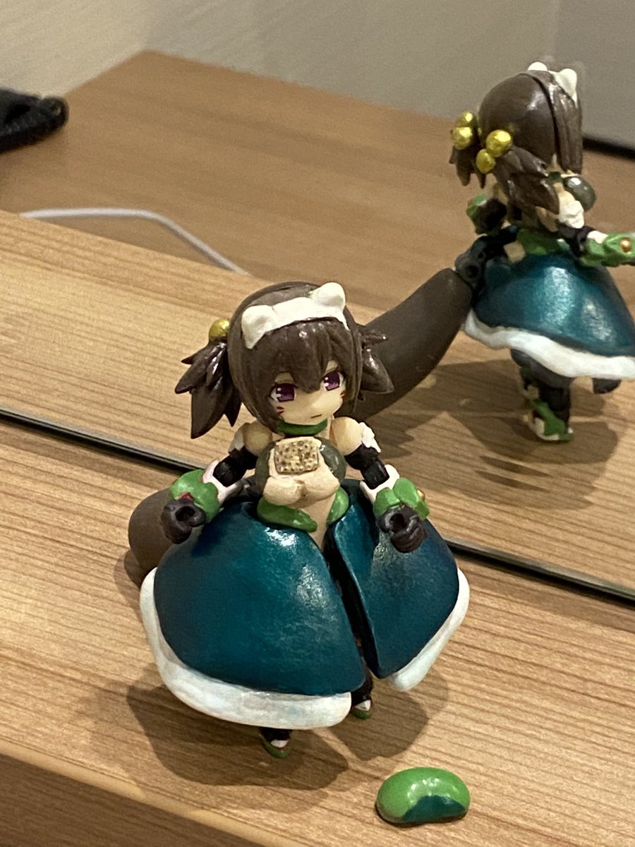 【コンテスト参加】【応募条件に同意します】【男性】 #デスクトップアーミー #コトブキヤ 狸型d-phone 朱羅シリーズを元に作成された小規模店舗会計補助モデル 汎用性が高く招き猫にもなるシルフィーが主流となった 戦闘面では機雷散布特化 一見女性型に見えるが胸はクレイモア地雷であり偽物