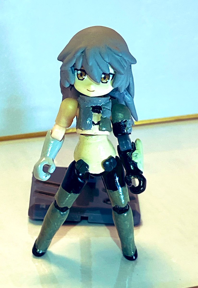 【コンテスト参加】 【応募条件に同意します】 【アリスギア】 #デスクトップアーミー #アリスギア 『東雲チエ』 恐らくは既存の量産型モデルを許可なく個人が改修を重ねた個体か、開発経緯は詳細不明 見た目の割に年老いたような言葉を好んで使用する たまにボケたような言動をとることも
