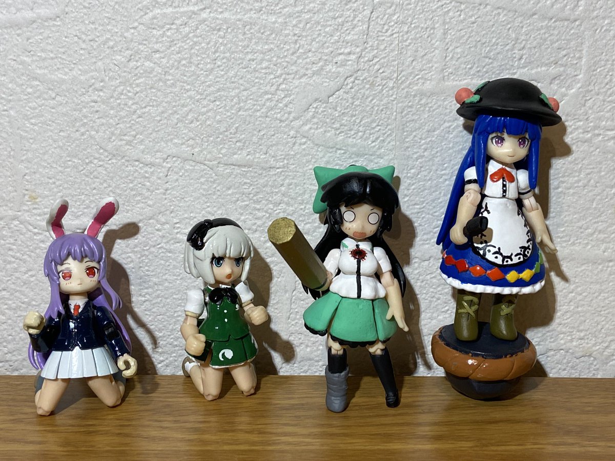 #自作品のお気に入り四天王の画像を貼る_見た人もやる #デスクトップアーミー 4体に絞るのが難しいが最近はこの辺? 因みに①は収納ケースがこいつ専用のだからあまり持ち出さず、③は旅に出た 脱げるパテ製パンツ個体や1番最初のオリジナル個体や1番最初の版権キャラ作成も同率ではある