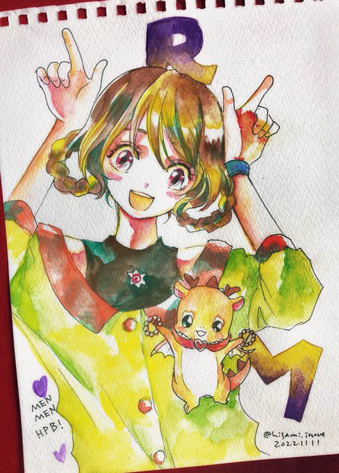 お題より 華満らん&メンメン。サイトで知ったが今日はメンメンの誕生日なのね。メンバーヌ・チュルチュルット・クルクルリン・グルタミンサン・メンドラゴン、ハピバ〜〜 🐲🎂👏✨🎊 らんらんの倍、時間が掛かったのは内緒だ #プリキュア版深夜の真剣お絵描き60分一本勝負
