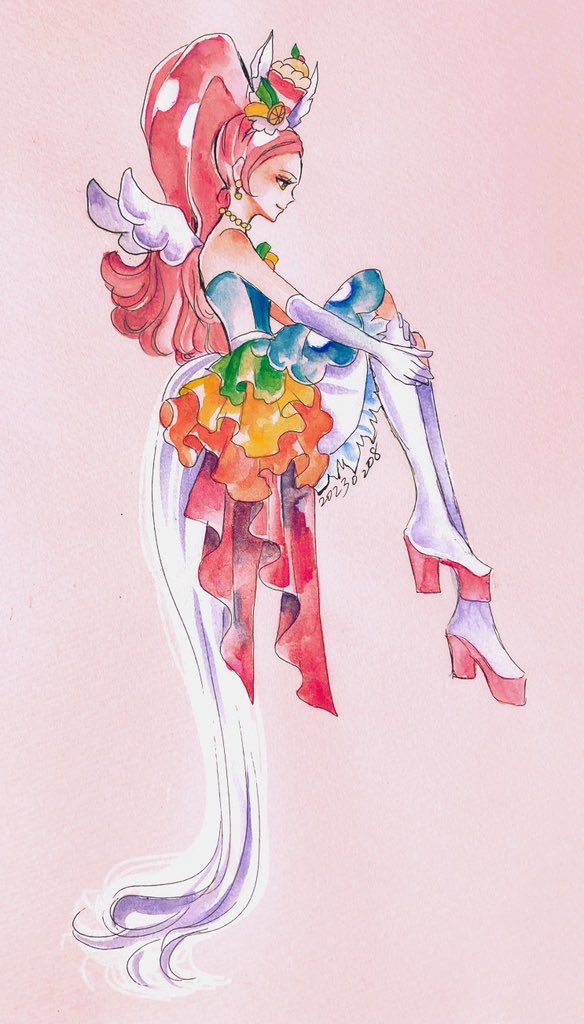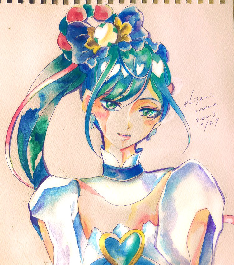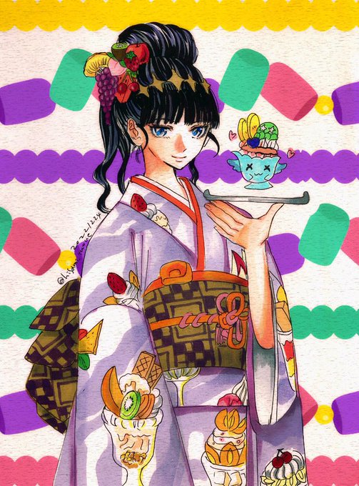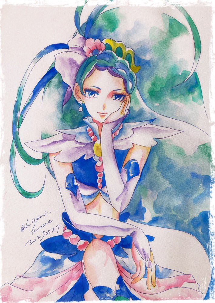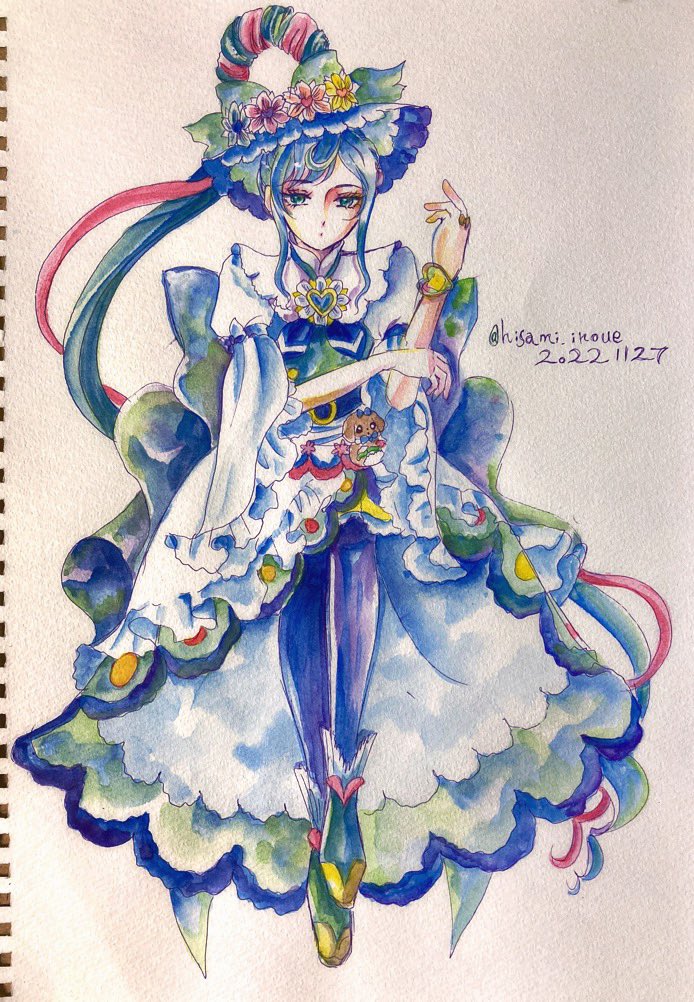 テーマを知ったとき真っ先に思い浮かんだまほプリ校長先生和服バージョンで。でもこれマフラーじゃなくてスヌードだったらどうしよう…後姿を見ても判らなかった。その時はさげます😅 #プリキュア版深夜の真剣お絵描き60分一本勝負