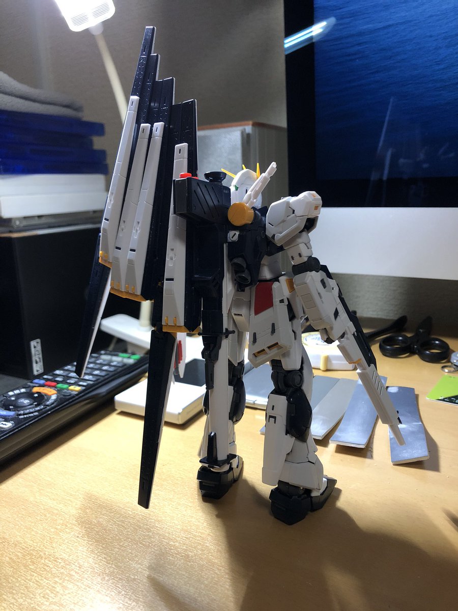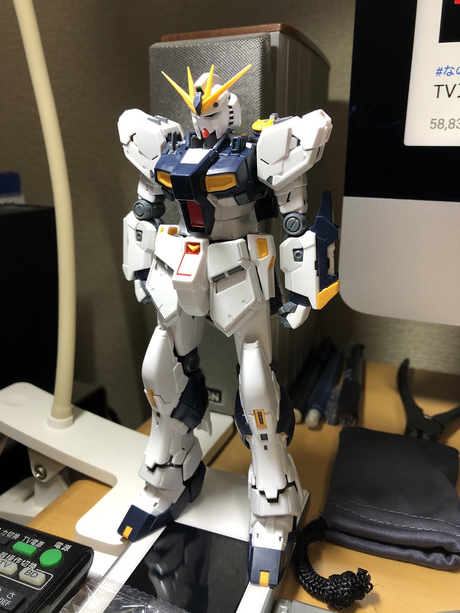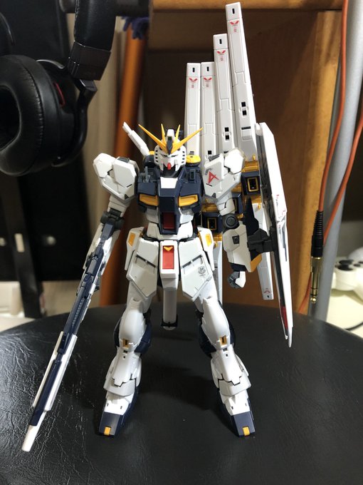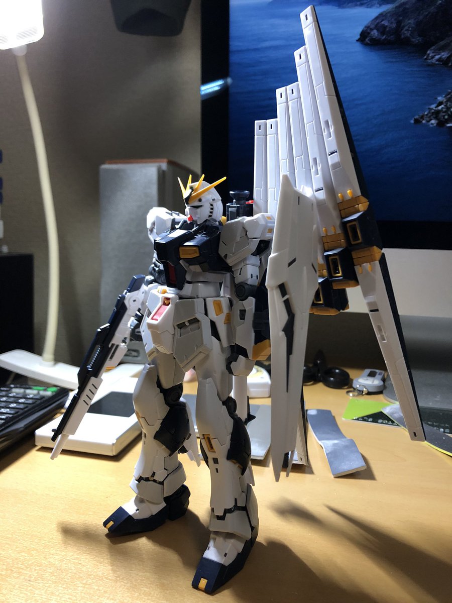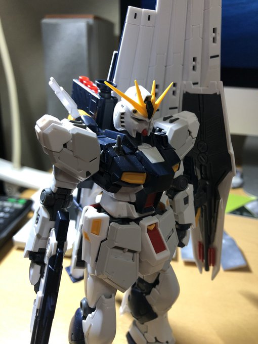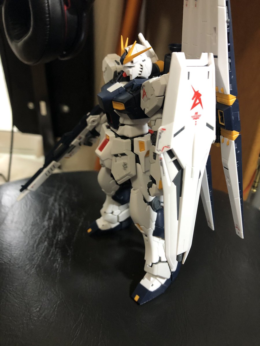艶消しクリアーで仕上げです フィンファンネルは4枚が限界かな? シールドポロリなんとかしたいかなぁw 接着しちゃうと最終殴り合い仕様ができない… RGでHi-νガンダム出ないかな #RG #ガンプラの画像貼るとRTされると聞いて #νガンダム