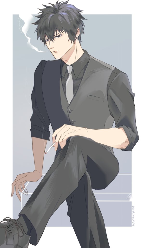 外務省のパーティー的なんに駆り出されたけどダルくて一服してる…みたいな( ᐛ )狡噛さん大好き過ぎて描くの難しい🤦♀️ #イラスト