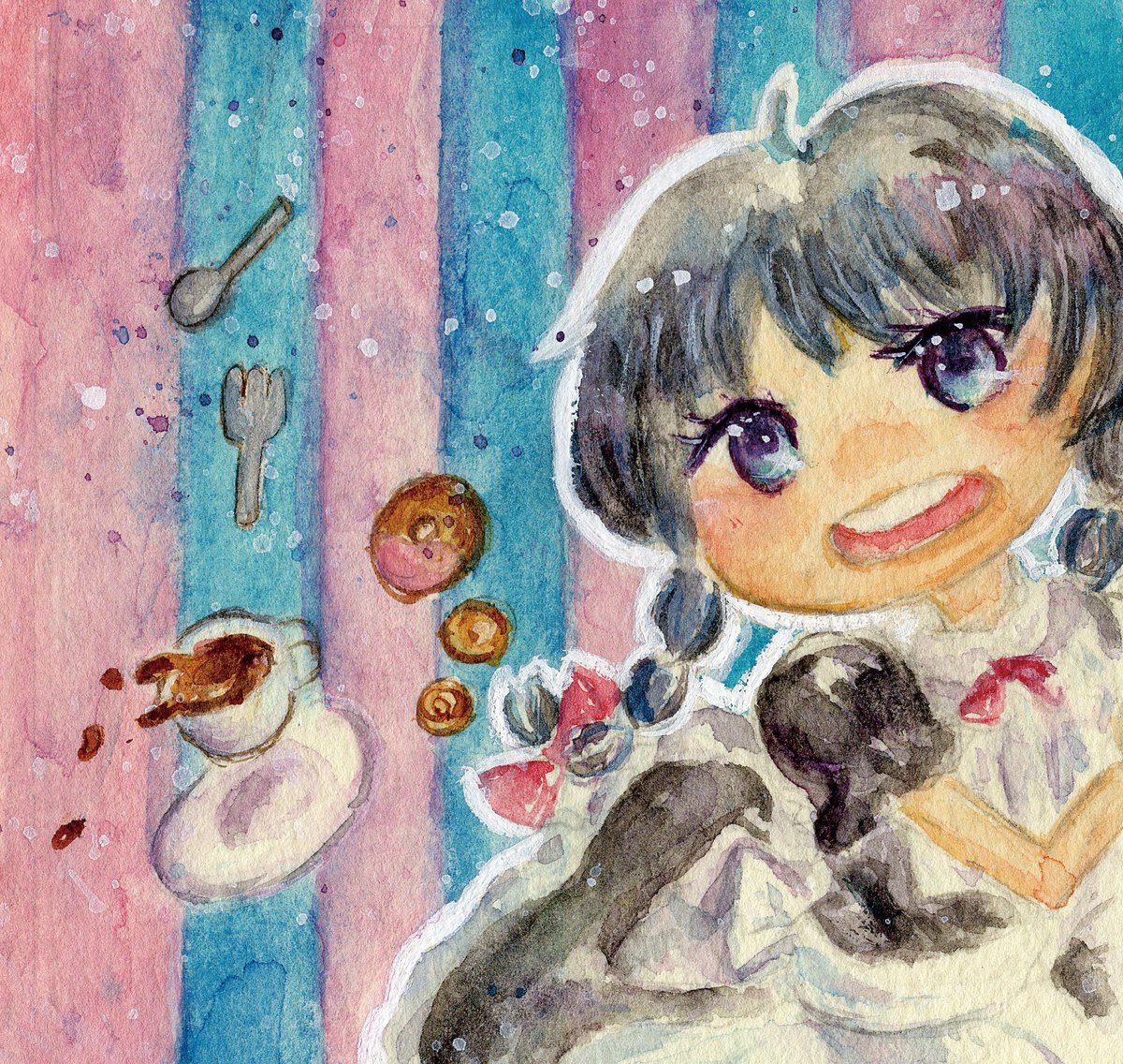 遅くなりましたが、さくらもちさんの(@ask_skrmchi6o6)企画で参加させて頂いたイラスト完成しましたのでアップさせていただきました! 描けば描くほど可愛いな思いました! 楽しかったです〜企画お疲れ様でした(*ˊᵕˋ*) #もっちんぐ展 #第一回おもちとつーどろーいんぐっ