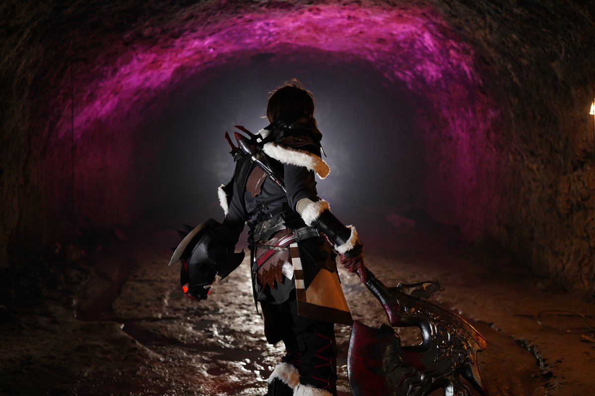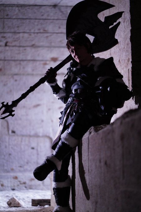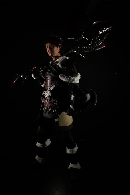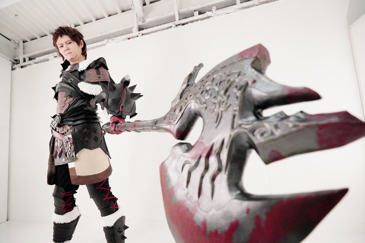 FINAL FANTASY XIV 闇の戦士 アルバート-Arbert- コスプレ 大谷稲荷山撮影会のときの写真、まずはポトレ的に撮って頂いたぶん! 天井が高いor空なおかげか、斧のサイズ感が前回より更に際立った気がしますねわぁい(*´ω`) Photo:@renjaijai #大谷稲荷山撮影会 #ミヤコス #FF14cosplay #ffxivcosplay
