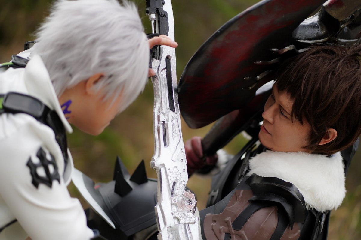 梓さんサンクレッドと撮影したかった3枚! 本編では衣装的にあり得ない組み合わせですが、だからこそ妄想が膨らむってもんよ……いや共闘写真ワックワクしますねこれ サンクレッド:@813ARxZC アルバート:緋水 Photo:@renjaijai #大谷稲荷山撮影会 #ミヤコス #FF14cosplay #ffxivcosplay