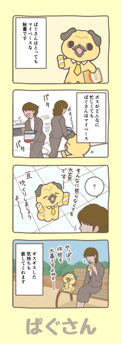 友人のようにアナタに接してくれる #ぱぐさん どんなときでもリラックスさせてくれるのは、ぱぐさん! おおらかで面白いぱぐさんと話していると自然と活力が湧いてきますよ。 #ヒショワン株式会社 #4コマ漫画