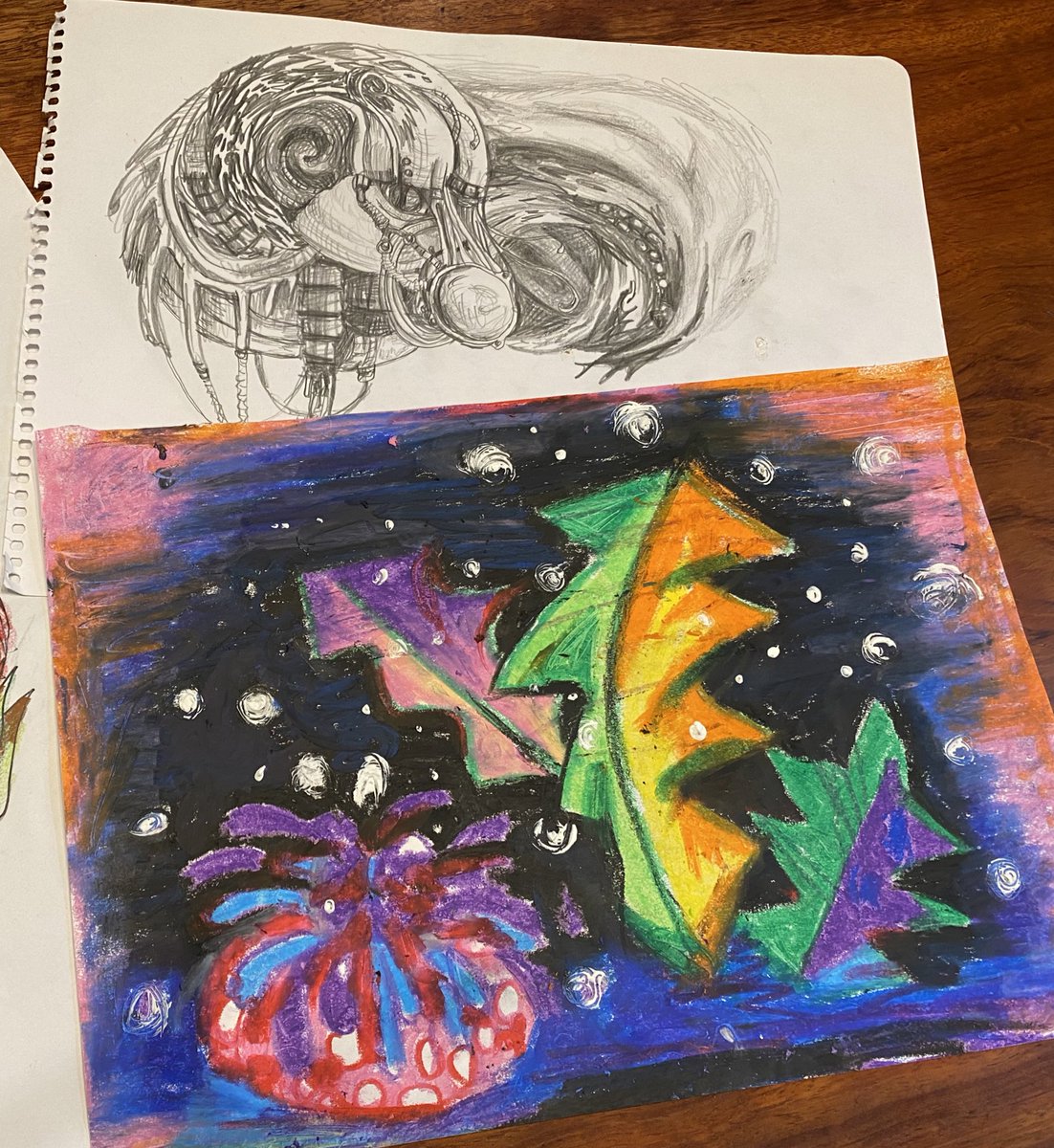 絵描きになるのを諦めてパッタリ10年以上絵を描かなくなってたのですが、子供との落書きのおかげで今年の夏からまた絵を描くようになりました〜 (お絵描き再開した頃の絵↓) #12月になったのでフォロワーさんに自己紹介しようぜ #クレヨン画 #鉛筆画 #絵描きさんと繋がりたい