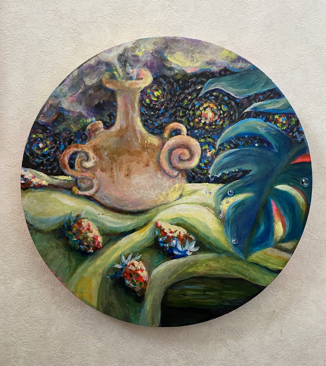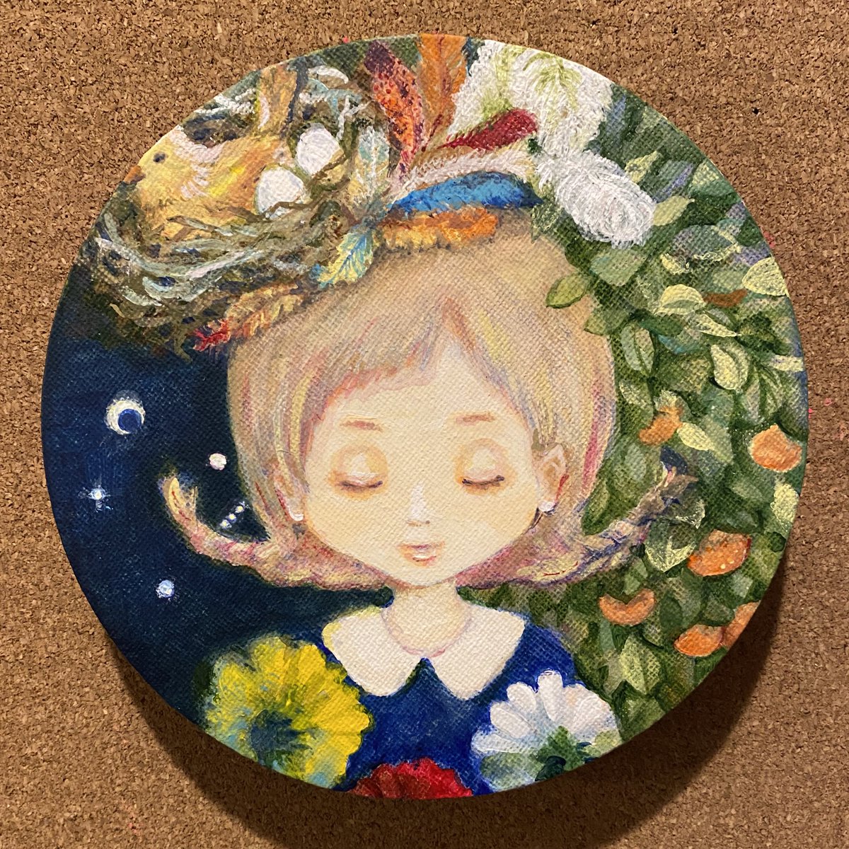 完成しました🐣 冬の夜の夢 Φ15cmで今回はかなり小さめです。 #みんなで楽しむTwitter展覧会 #芸術の輪 #絵柄が好みって人にフォローされたい #絵描きさんと繋がりたい #冬の創作クラスタフォロー祭り
